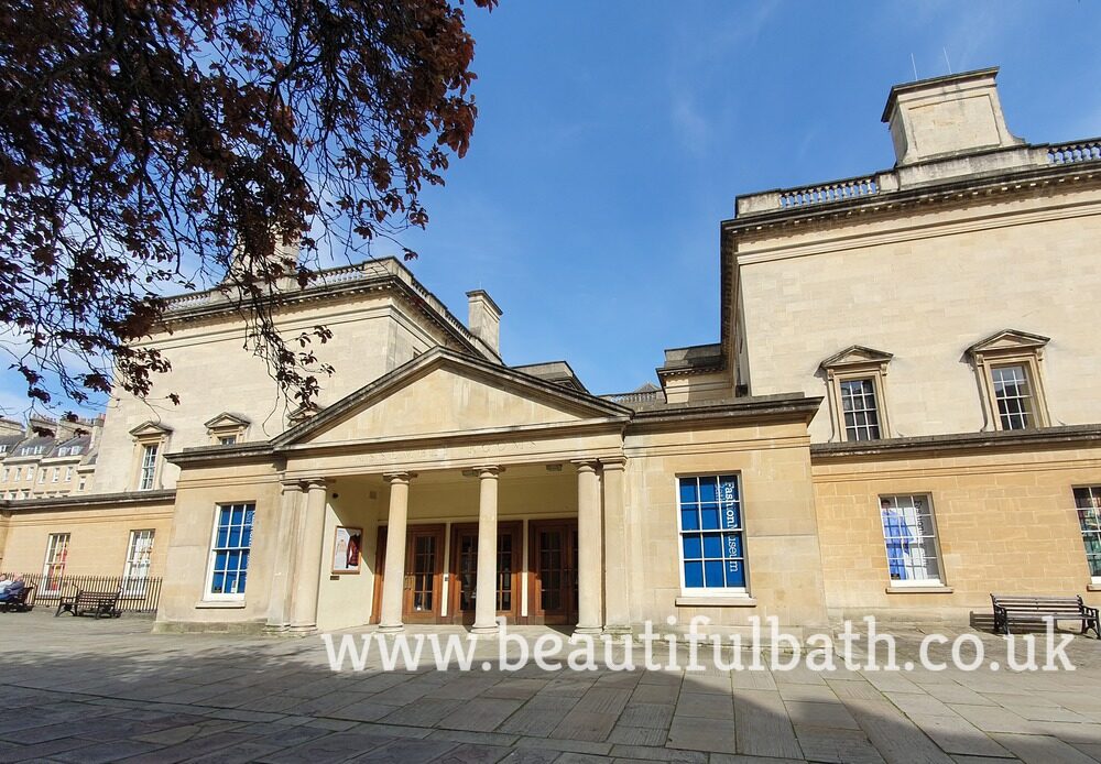 Across Bennett Street is the Assembly Rooms, one of the key Persuasion locations in Bath and one of the most important buildings in Georgian Bath. Walk to the right and cross Bennett Street to approach the front entrance to the Assembly Rooms. At the time of writing the site is being renovated by the National Trust, but will be open again – check their website for details: https://www.nationaltrust.org.uk/visit/bath-bristol/bath-assembly-rooms.