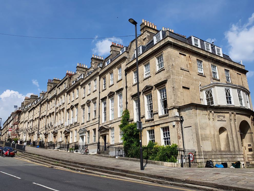 When Lansdown Road bends left, turn right onto Camden Crescent and walk along to the handsomely curved terrace. Camden Crescent, then Camden Place, is where the Elliots, in their half-hearted attempts at retrenchment, have rented a house.