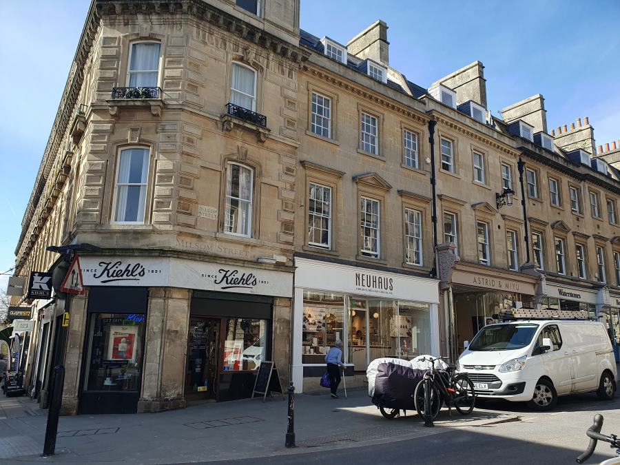 This is a good spot for people watching, as everyone promenading or running errands through town would be likely to pass down Milsom Street.